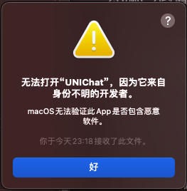 Find UNICHAT notice and click "Open Anyway". Enter password to confirm.